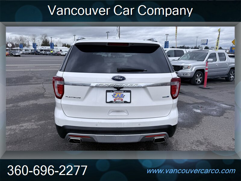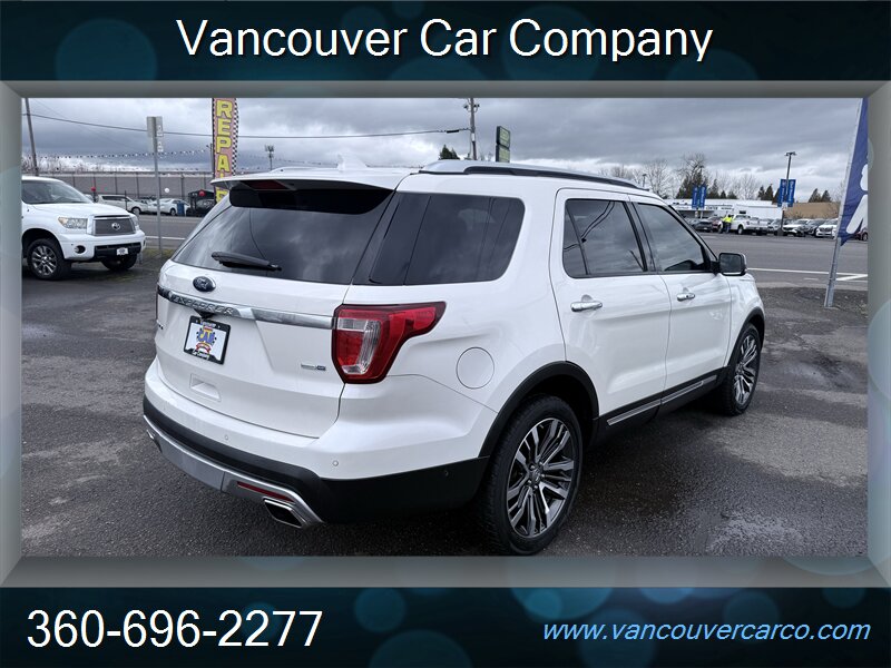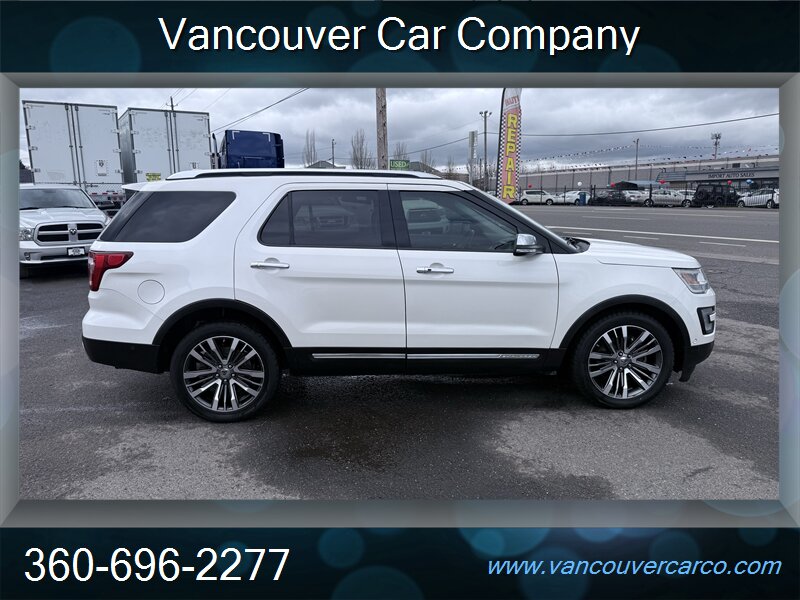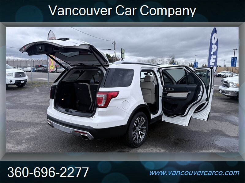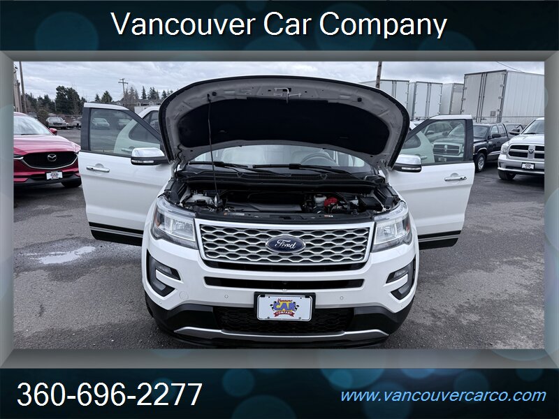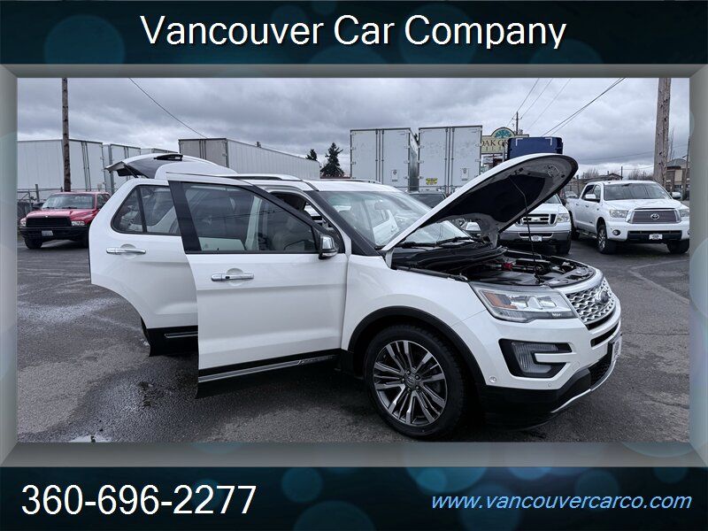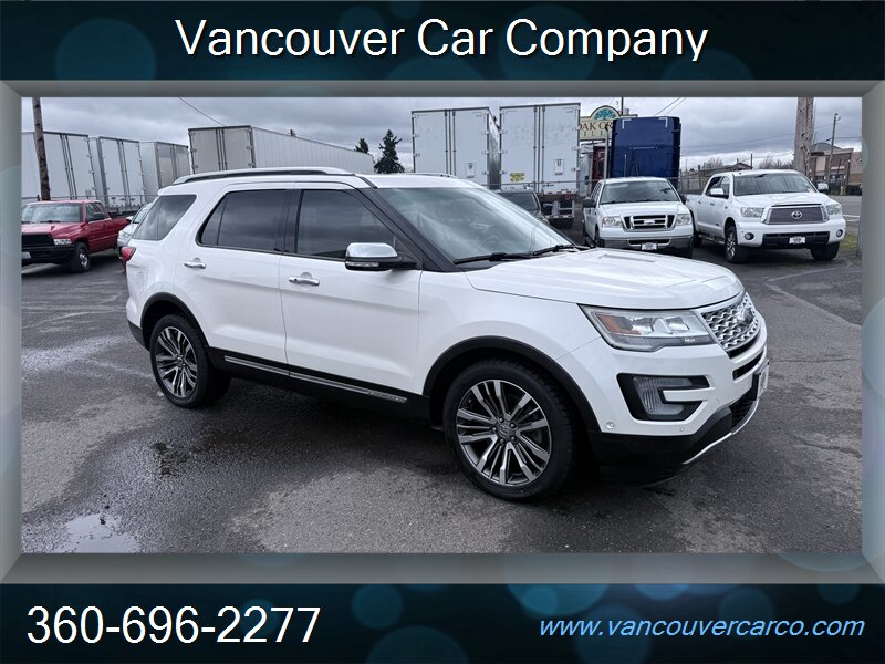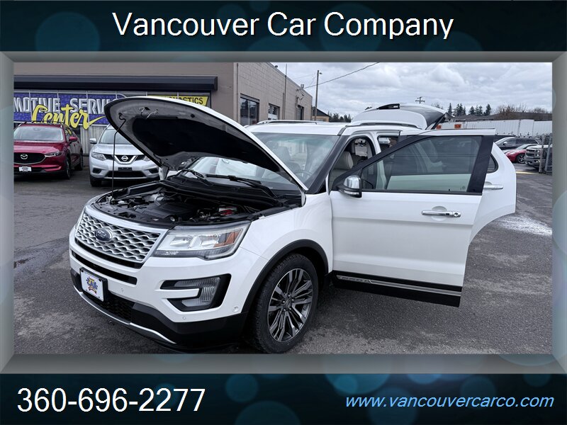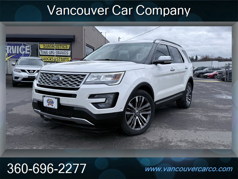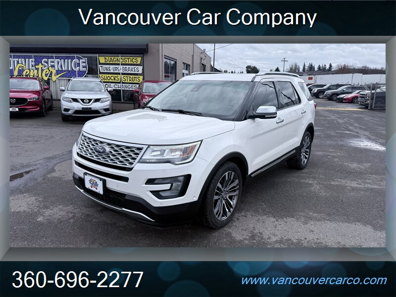 No sales tax to Oregon residents. Vancouver Car Company, family owned and operated with a Full-Service Shop. Our Full Time Mechanics make the difference. This beautiful, low mileage, top of the line, 2016 Platinum model 4x4 Explorer is a hard to find, 3rd row seating, luxury SUV being offered at a very affordable price point. Carfax Certified, local Explorer with a clean title and a strong Carfax history report since new. Nicely equipped with pristine leather, factory moonroof, power/heated seats, adaptive cruise, bsm, rear camera and much more. It's been well cared for and shows pride of ownership, rides as nice as it looks and is ready for all your Northwest adventures for what should be years to come. It will not disappoint. Priced fairly and proudly offered at Vancouver Car Company. This vehicle has been mechanically inspected, certified in our on-site dealership service department, and comes with a warranty for your protection! Financing available for all that qualify. Past credit problems OK! Simply call (360) 696-2277 or go online to www.vancouvercarco.com for your PRE-Approval today. Showroom Hours: Monday thru Saturday 10am to 6pm. Closed Sundays. Service Department Hours: Monday thru Friday 9am to 6pm.